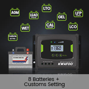 کنترل کننده شارژ خورشیدی Melin Sunergy KWAFOO RV MPPT که در مدل های KF2420، KF2430، KF2440 و KF2450 در دسترس است، یک محصول با کیفیت بالا با منشاء چین است.با گواهینامه ای از جمله CE، FCC و UKCA ، این کنترل کننده برای انواع مختلف باتری مانند AGM ، GEL ، WET ، کلسیم ، کریستال سرب ، LTO ، LCO ، LFP و گمرک مناسب است.