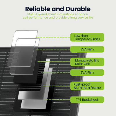 در قلب این کیت سیستم خورشیدی RV یک پنل خورشیدی تک کریستال سیاه با کارایی بالا است که به خاطر کارایی و دوام برتر شناخته شده است.پانل های تک کریستال شناخته شده اند که در مقایسه با سایر انواع پانل های خورشیدی، تولید قدرت بیشتری دارند.، که این کیت را انتخاب عالی برای صاحبان RV که نیاز به تولید انرژی قابل اعتماد دارند، می کند.